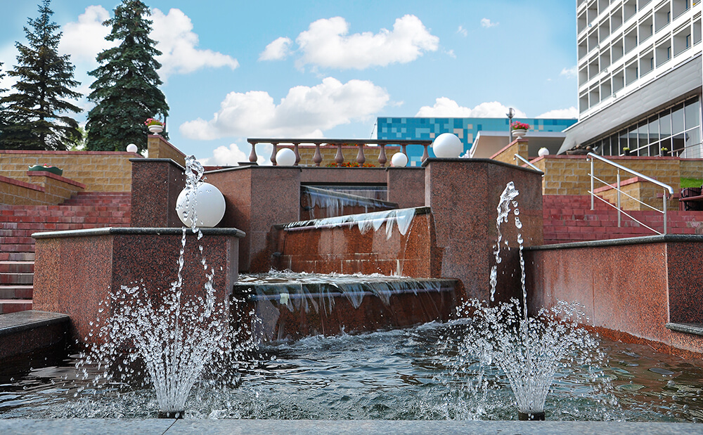 Благоустройство территории, строительство каскадного фонтана, реконструкция кино-концертного зала санатория, строительство спа-центра.